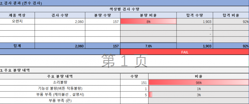 (검수보고서작성 불량율기록하여 공장에 개선요청)